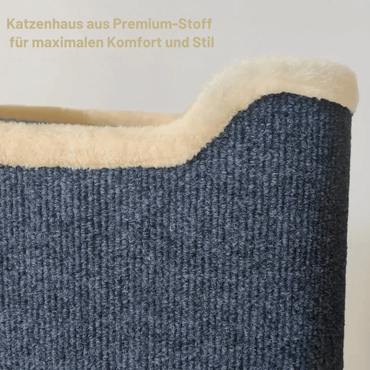 Katzenhöhle mit 2 Ebenen – Indoor Katzenhaus mit Spielzeug & Liegefläche