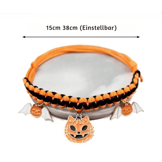 Halloween Halsband – Handgefertigtes Breakaway-Halsband für Katzen & kleine Hunde mit Kürbis- & Geisteranhänger, sicher & stylisch