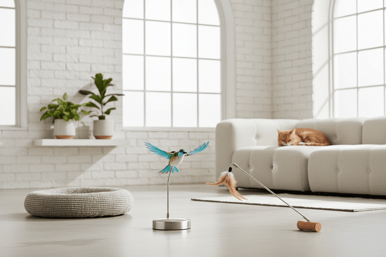 Elektronischer Feder-Teaser Interaktives Katzenspielzeug