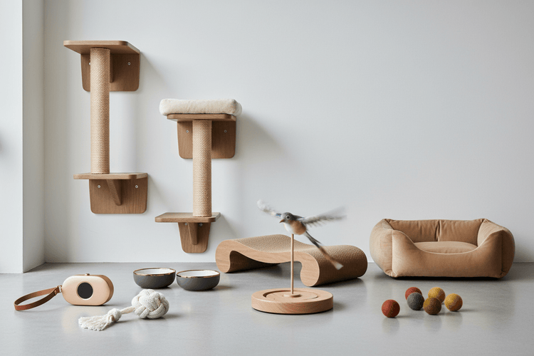Fellfunk Wand-Katzenbaum aus Echtholz